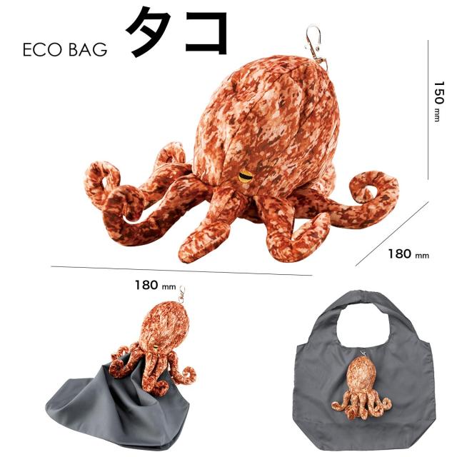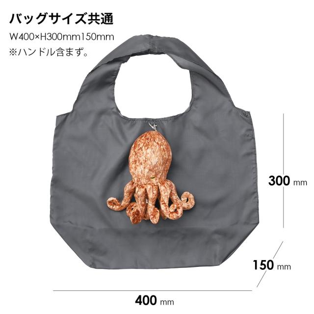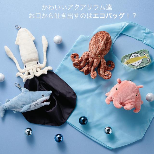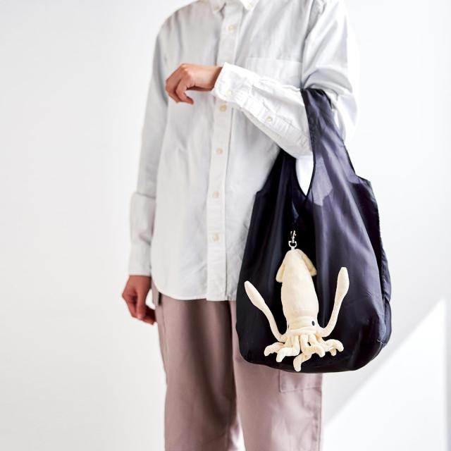 イカ、タコ、ホオジロザメ、メンダコのモチーフが施された4種類のバッグは、どれを選んでも注目の的。