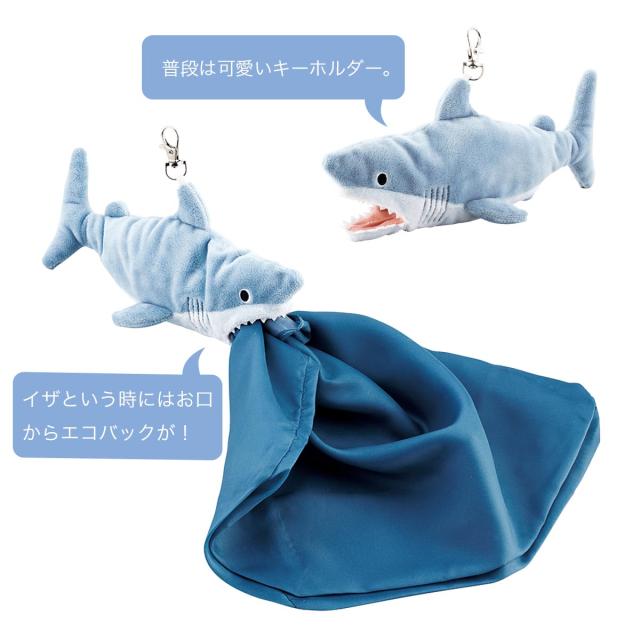 まるで水族館からそのまま連れ出したかのようなリアルなデザインで、使うたびに楽しい気持ちにさせてくれます。普段はキーホルダーとして使いながらイザっと言う時にはお口からエコバックが出てきます。