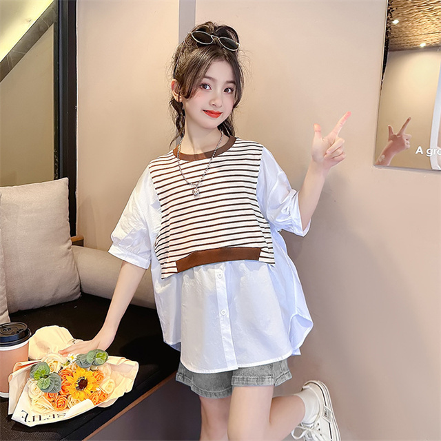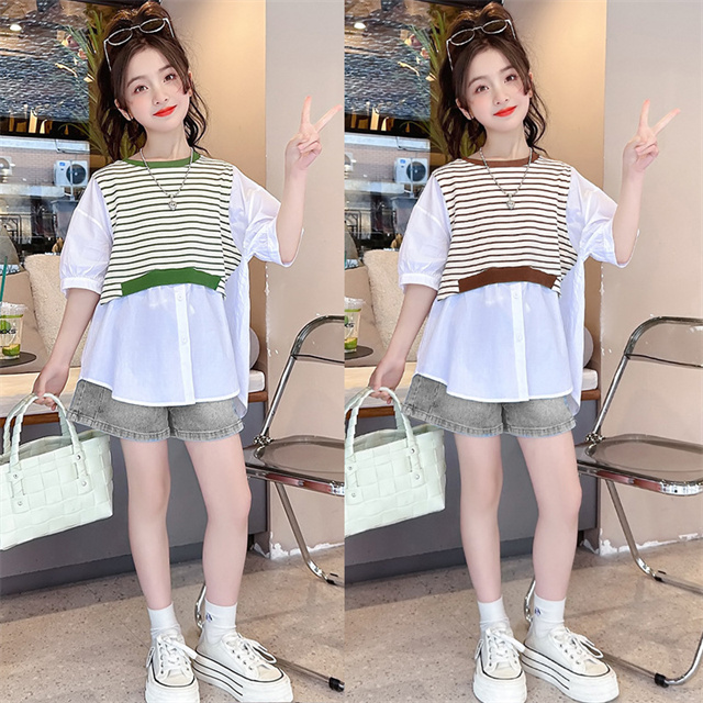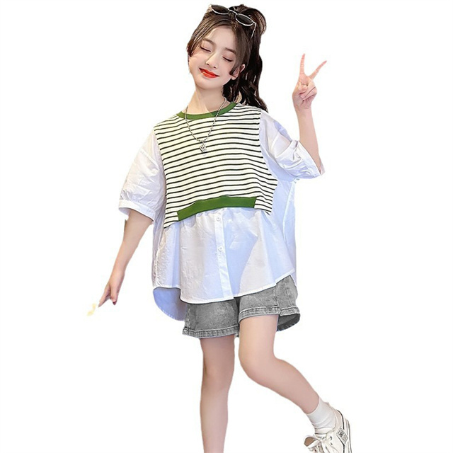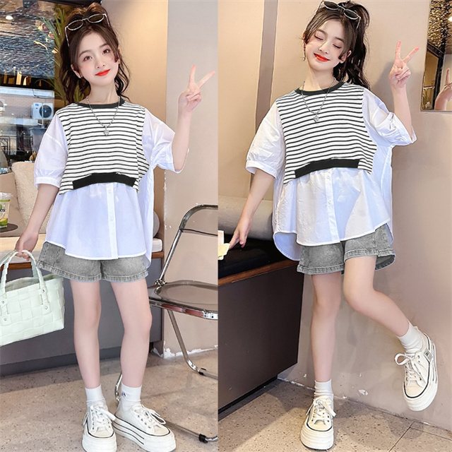 子供服 セットアップ キッズ 女の子 夏半袖 Tシャツ デニムパンツ上下2点セットおしゃれ カジュアル 可愛い 新作 120-170cm