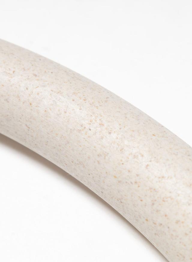 4、このハンガーの素材には環境に配慮し、お米の「もみ殻」を活用したバイオマスプラスチックを使用している。