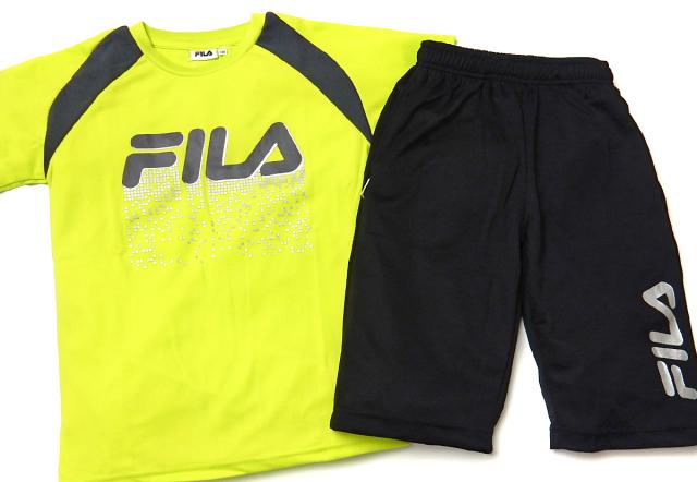 【送料無料】男児 ジュニア 吸汗速乾 半袖 Tシャツスーツ 上下組 FILA/フィラ ハーフパンツ ジャージ 通気性 配色 箔プリント 子供服 男の子 140cm 150cm 160cm iw-1097a-gn【メール便対応】