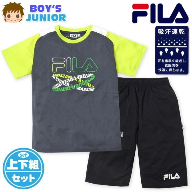 【送料無料】男児 ジュニア 吸汗速乾 半袖 Tシャツスーツ 上下組 FILA/フィラ ハーフパンツ ジャージ 通気性 配色 ロゴ 子供服 男の子 140cm 150cm 160cm iw-1098b-cc【メール便対応】