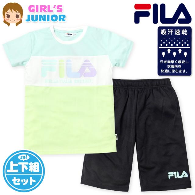 【送料無料】女児 ジュニア 吸汗速乾 半袖 Tシャツスーツ 上下組 FILA/フィラ ハーフパンツ ジャージ 通気性 配色 ロゴ 子供服 女の子 140cm 150cm 160cm iw-1103a-mt【メール便対応】