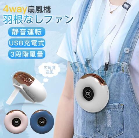 携帯扇風機 扇風機 羽根なしファン USB充電式ファン 広角度送風 ミニ扇風機 BLDCモーダー使用 1台4役 首掛け 卓上 腰かけ ハンディ 風力3