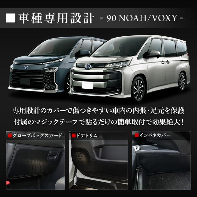 90系 ノア ヴォクシー 専用 キックガード3点セット 選べる2タイプ[カーボン調/レザー調]