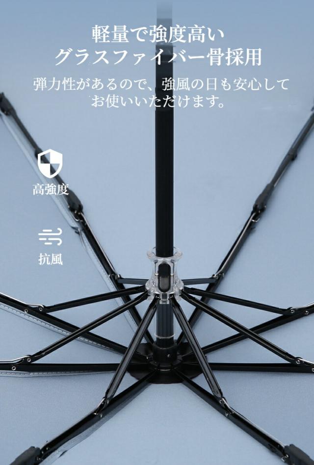 【8本のグラスファイバー骨】親骨は軽くて高強度なグラスファイバーを採用。軽量で錆びにくい上、弾力性に優れているため強風に煽られても折りにくい。
