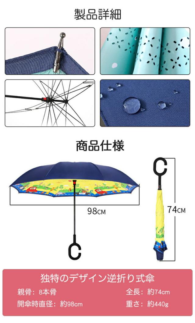 【傘立て付き】傘 逆さ傘 子供 日傘 キッズ 高品質 UVカット 女の子 男の子 かわいい キャラクター C型持ち手 自動開く アイテム 8本骨 丈夫 梅雨対策 夏 ワンタッチ 撥水耐風 完全遮光 晴雨兼用 ジャンプ傘 軽量 プレゼント 小学生 通学 ギフト 送料無料