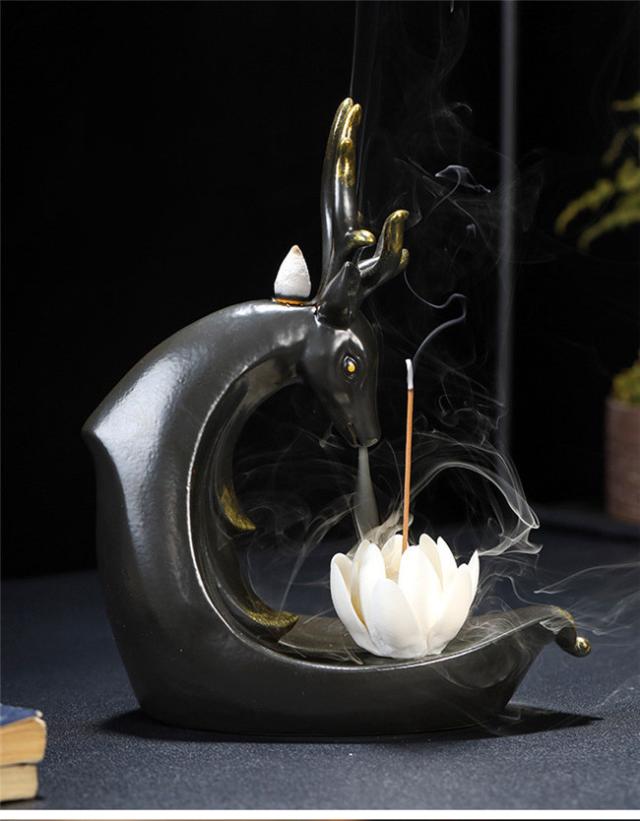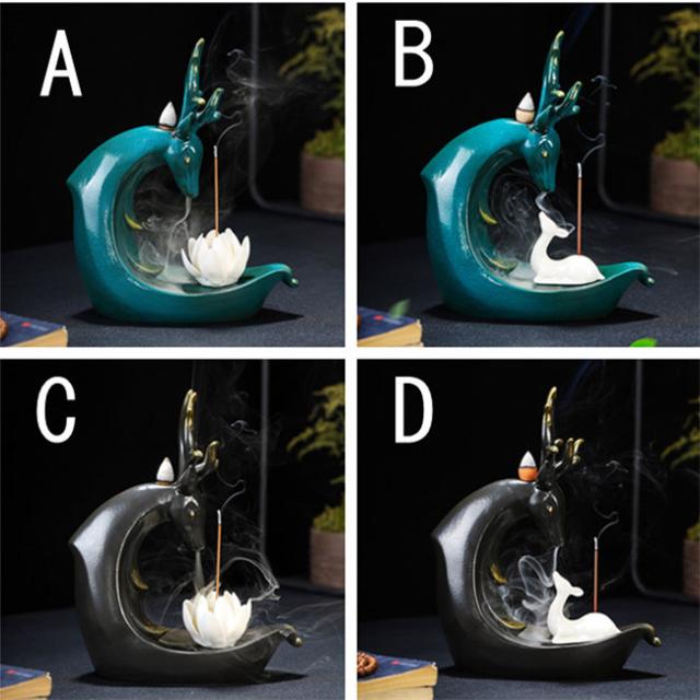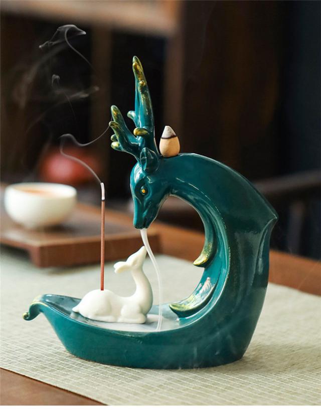 グリーン 鹿 倒流香 香炉 お香ホルダー 流川香 香炉用品 セラミック 置物 陶芸 開運 風水 ドラゴンボール お香立て 陶器 幻想 インテリア 置物 香り 仏具 お香 ホルダー 煙 煙逆流 瞑想 幻想 プレゼント 贈り物 ご褒美 おしゃれ