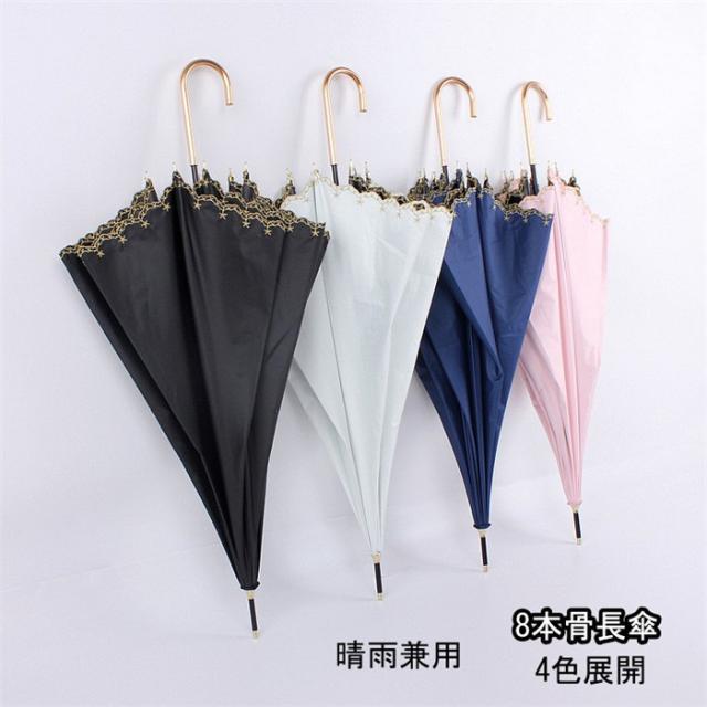 傘 長傘 晴雨兼用 8本骨 upf50+ 4色展開 レディース メンズ レザーハンドル ストレートハンドル 軽量 軽い 雨傘 日傘 男女兼用 UVカット UVカット 遮熱 長傘 傘 かさ 晴雨兼用 レディース 女性 用 おしゃれ プレゼント ギフト かわいい 裾刺繍 花 星