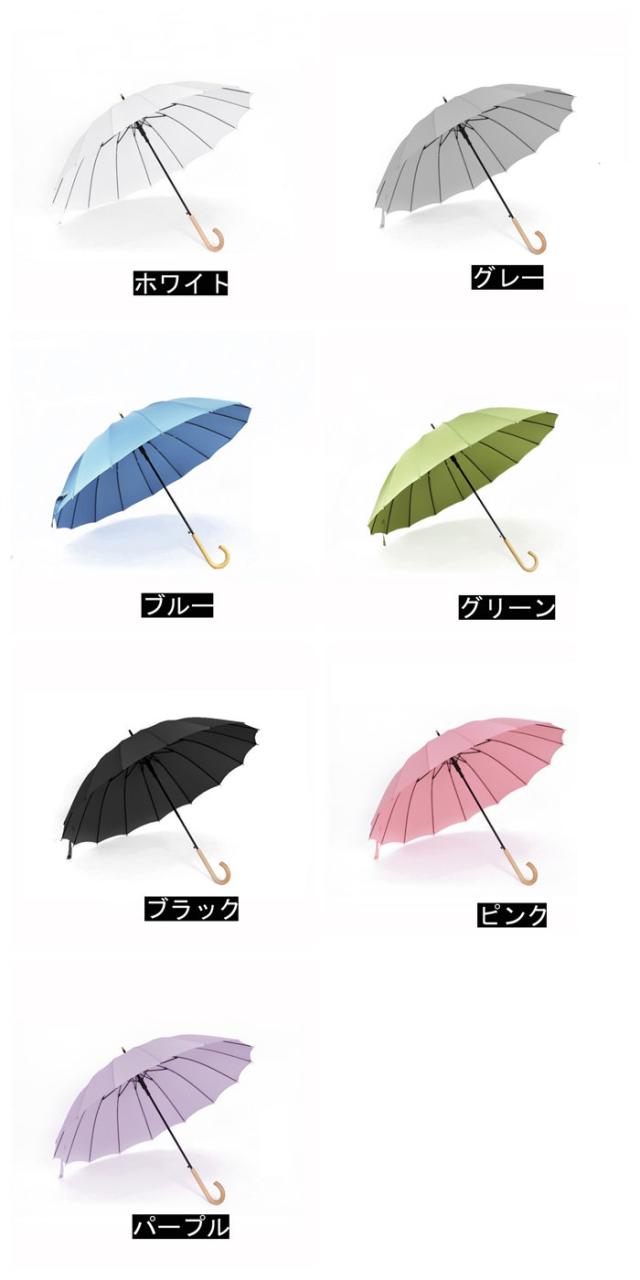 【送料無料】晴雨兼用 長傘 16本骨 ジャンプ式 UVカット 耐風 撥水 - 男女兼用 7色展開 - 軽量 頑丈 おしゃれ