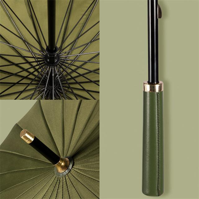 傘 長傘 晴雨兼用 24本骨 7色展開 長傘 レディース メンズ レザーハンドル ストレートハンドル 軽量 軽い 雨傘 日傘 男女兼用 UVカット 紫外線カット 撥水 抗風 耐久 頑丈 豪雨対策 ワンタッチ 折れにくい ロング傘 おしゃれ 実用的 ギフト ショルダーケース収納