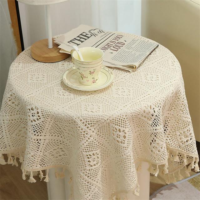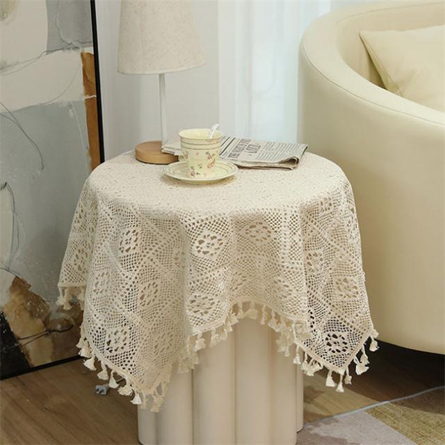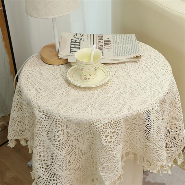 ベージュ 総レース 方型/円型 テーブルクロス/テーブセンタークロス/レース/北欧/リネン/正方形/円形/丸/花/花柄/刺しゅう/テーブル/クロス/カバー/綿麻製【センタークロス/正方形】 サイズ選択可能 テーブルカバー テーブル掛け