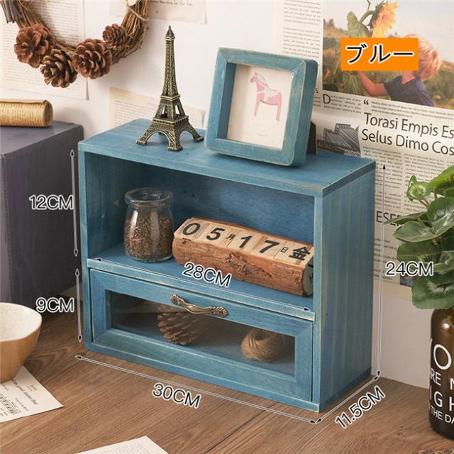 木製 ミニチェスト 卓上 アンティークウッド 小物入れ 引き出し 29.5*24*11CM 収納ボックス おしゃれ デスク収納 かわいい 収納 卓上収納 卓上チェスト 卓上収納ボックス 机上収納 引き出し収納 ブラウン/ブルー