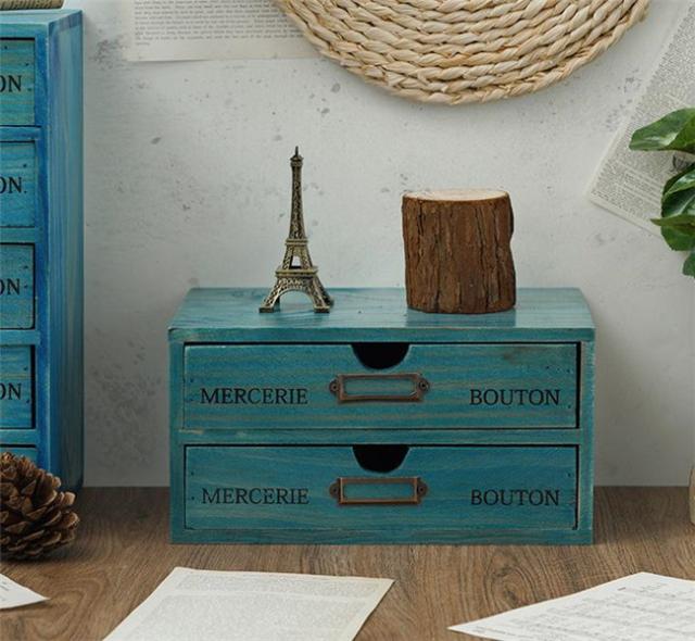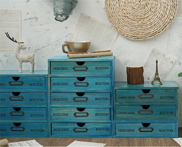 ミニチェスト デスク収納 木製 卓上 アンティークウッド 小物入れ 引き出し1段2段3段4段5段 収納ボックス おしゃれ かわいい 収納 卓上収納 卓上チェスト 卓上収納ボックス 机上収納 引き出し収納 ブラウン ブルー