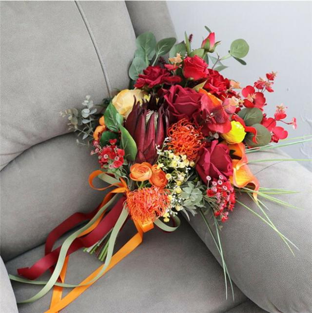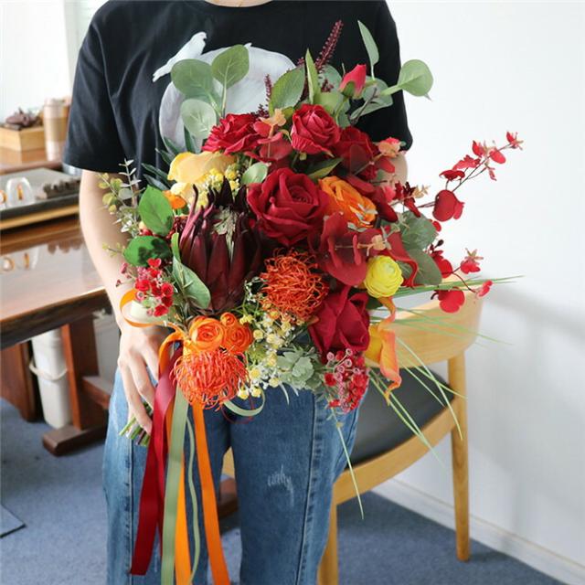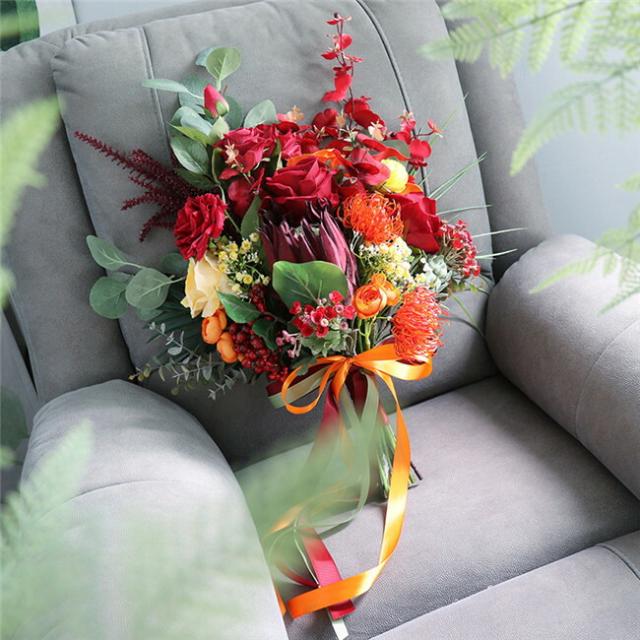 【ブーケ】ウェディングブーケ/造花ブーケ/ブライダルブーケ/ラウンドブーケ/トスブーケ/結婚式/花束【直径約40cm】 ドレスと合わせて 撮影ブーケ