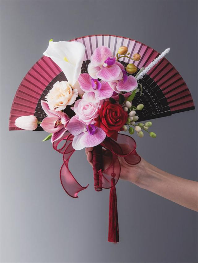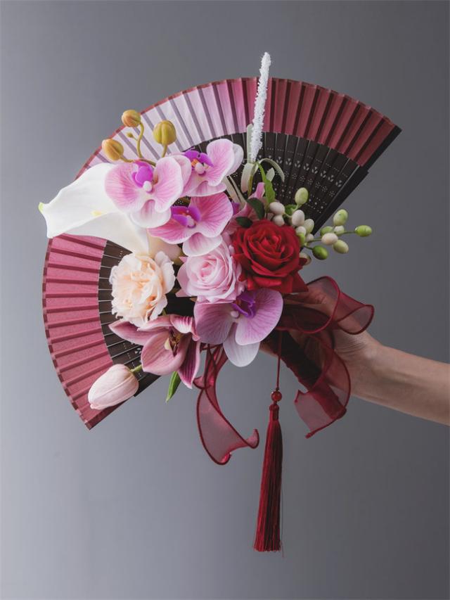レッド系 和装花嫁のブーケ 扇子ブーケ ローズのブーケ 春 花嫁 桜 扇子 和装婚用 送料無料 ブーケ 和婚 着物 和小物 金 結婚式 神前式 前撮り 着物ドレス 和室インテリア 結婚式 和装