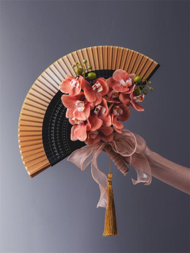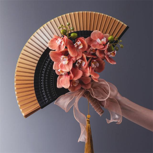 オレンジ系 和装花嫁のブーケ 扇子ブーケ 花のブーケ 春 花嫁 桜 扇子 和装婚用 送料無料 ブーケ 和婚 着物 和小物 金 結婚式 神前式 前撮り 着物ドレス 和室インテリア 結婚式 和装 ダンス 演出