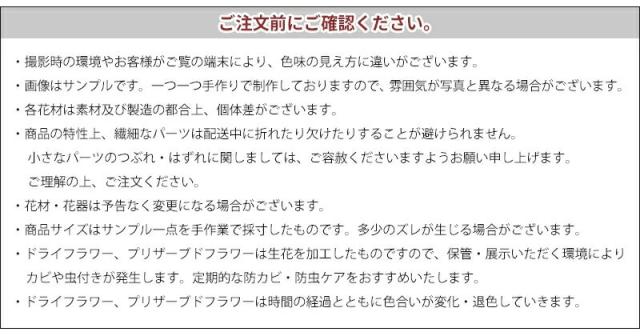 ・プリザーブドフラワーは自然の植物をドライ加工した素材です。色や形に個体差がありますので予めご了承ください。 |