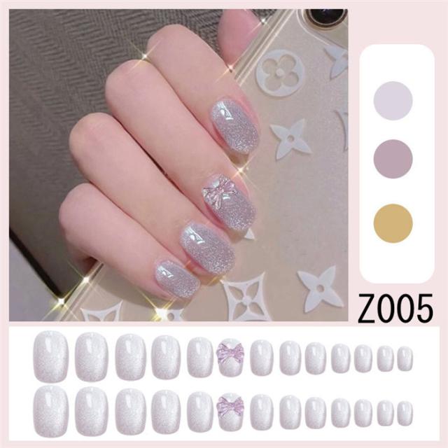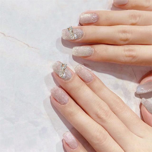 ネイルチップ ショート シンプル ブライダル ピンク つけ爪 クリスタル リボン付き お得な24枚SET セット ネイルアート デコネイル 成人式 結婚式 披露宴 ネイルチップ ネイルパーツ