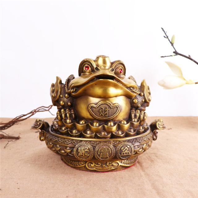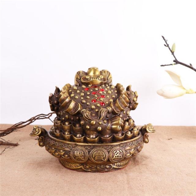 蛙 置物 風水 カエル 玄関 風水グッズ 幸運 金運 開運 財運 祈願 三脚蛙 三本脚 三本足 商売繁盛 カエル招財 三脚蛙 カエルの置物 開運祈願 インテリア 風水カエル 飾り物 サイズ選択可能 【銅製三脚蛙 大】