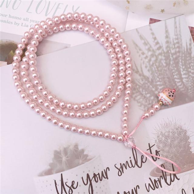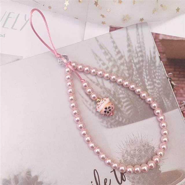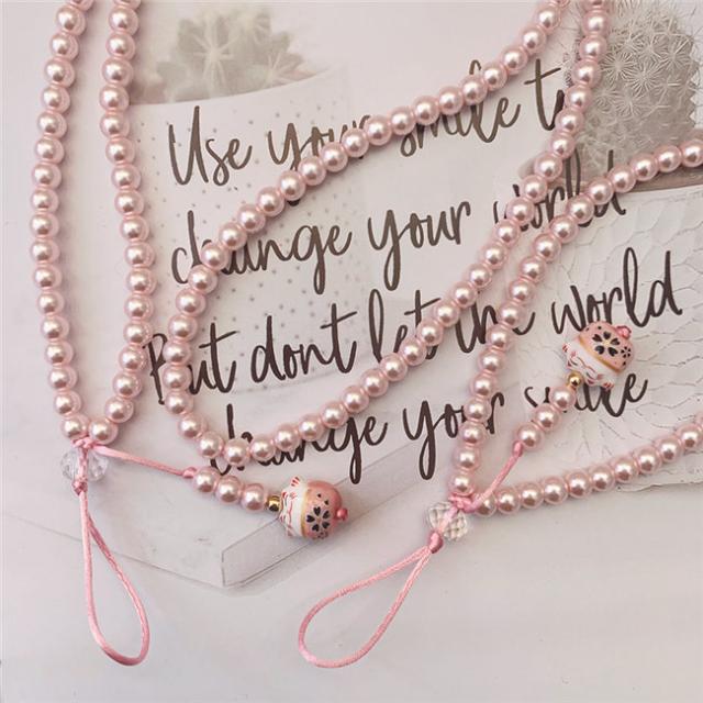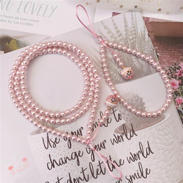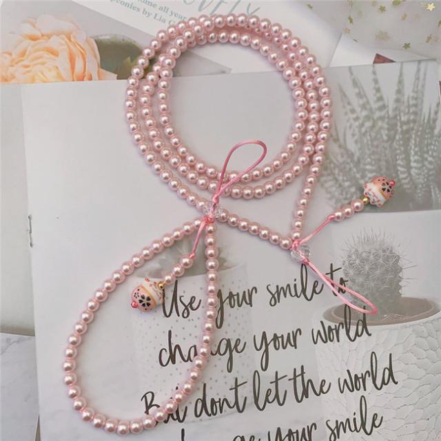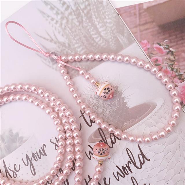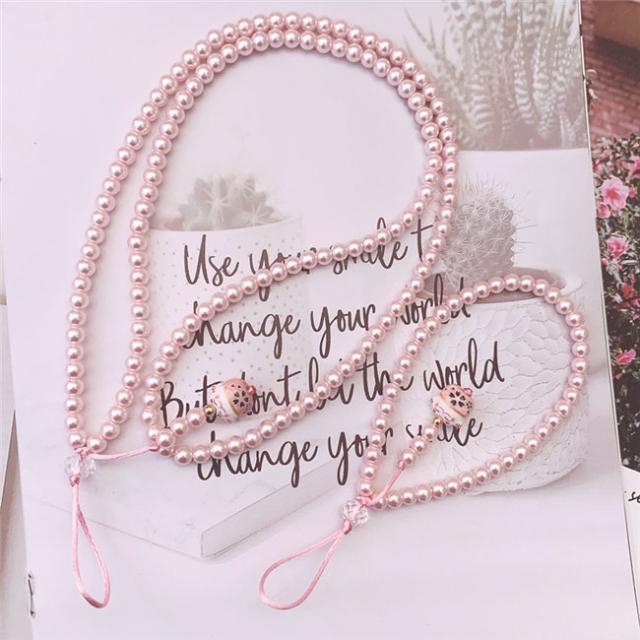 ピンク ガラス パール ネックストラップ スマホ ストラップ ハンドストラップ パールストラップ スマホケース 携帯ケース スマホケース 首掛け 腕掛け 落下防止 携帯 スマホ スマートフォン パスケース 社員証 IDカード スマホケース 母の日