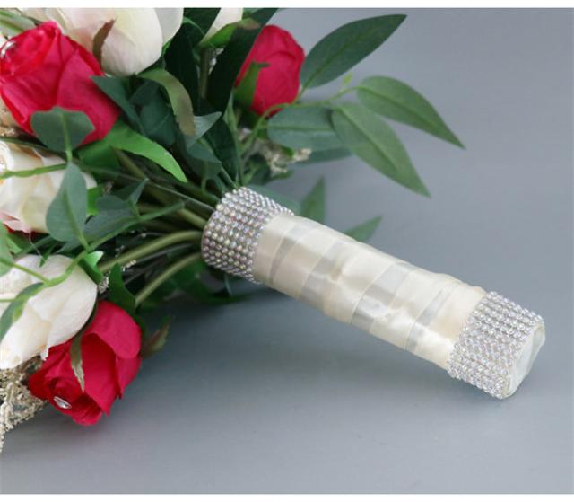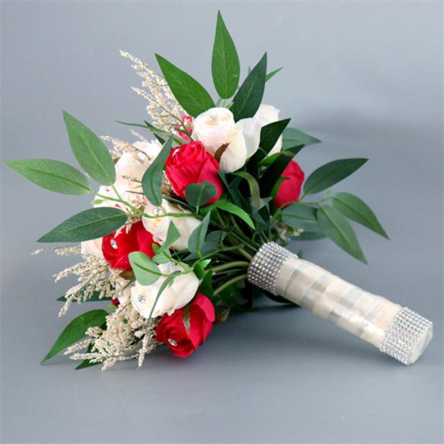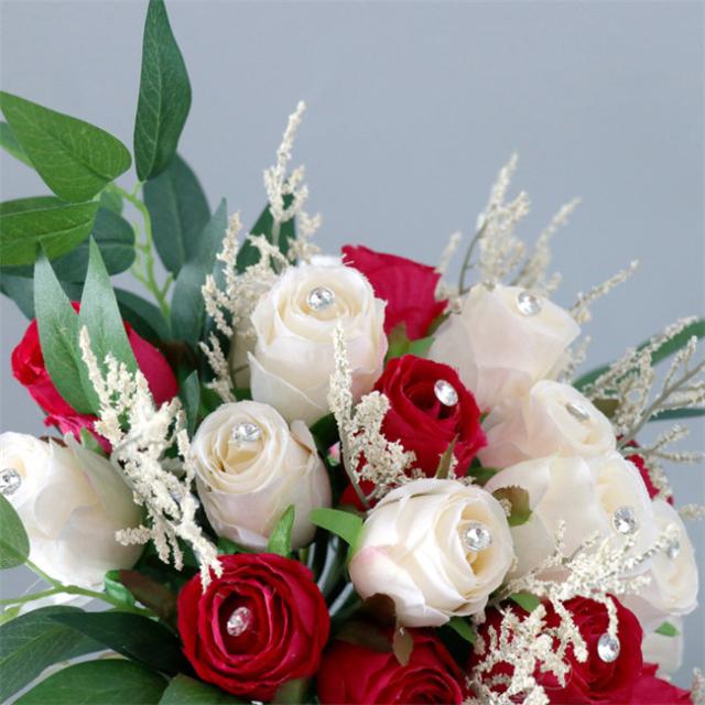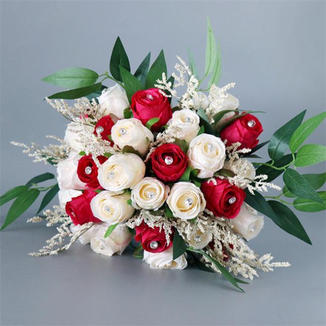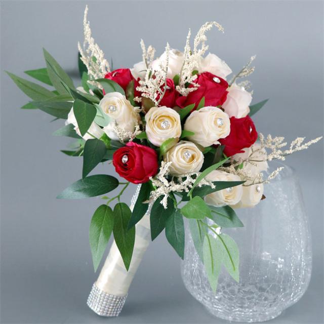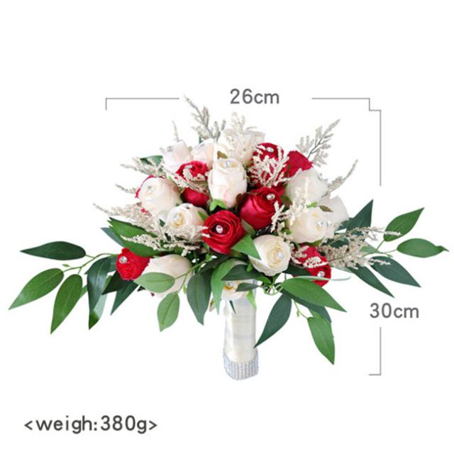 レッド 【ブーケ】ウェディングブーケ/造花ブーケ/ブライダルブーケ/ラウンドブーケ/トスブーケ/結婚式/花束【直径約26cm】 ドレスと合わせて 撮影ブーケ
