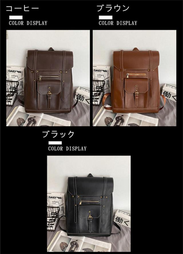 リュック レディース メンズ 男女兼用 バッグ 通勤 通学 おしゃれ シンプル 合成皮革 合皮 バック オフィス カジュアル 使いやすい 大人 可愛い フェイクレザー 上品 バックパック ブラック ブラウン コーヒー 3色展開