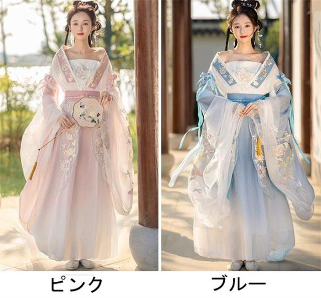 ピンク/ブルー 2点セット ドレス 唐装漢服 漢服仙女 中国古風 中華服 チャイナ服 チャイナドレス ワンピース コスチューム 中国古代衣装 女性 ロングドレス おしゃれ ステージ 撮影 舞台衣装 華流ステージコスプレ衣装 中国古代宮廷風コスプレ衣装