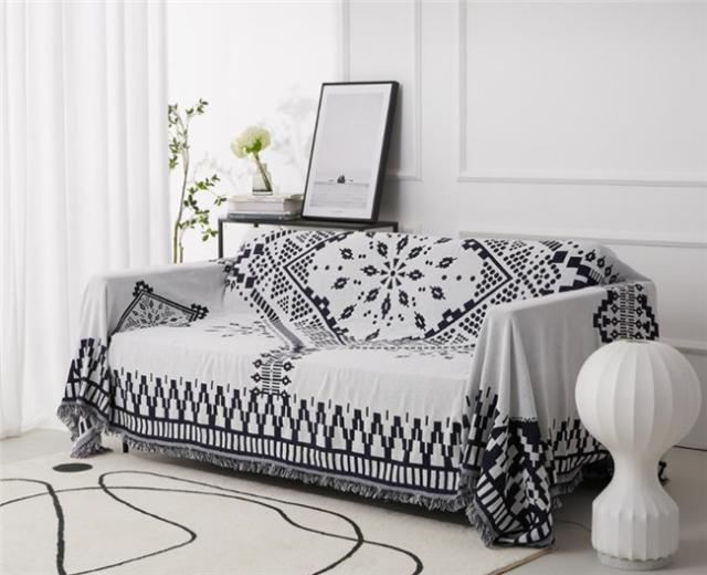 ソファーカバー ブラック 1人掛け/2人掛け/3人掛け 防塵 ボヘミアン風 西海岸 マルチカバー ソファー 四季兼用 長方形 ソファーカバー 2人掛け 3人掛け 4人掛け カバー 無地 汚れ防止 北欧風 幾何図形