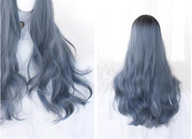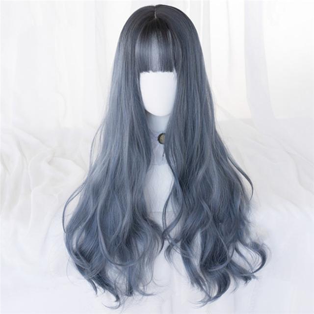 青い 71cm 長髪 ロング ロリータ 原宿風 巻き毛 ぱっつん前髪 可愛い ロング 耐熱ウィッグ コスチューム 仮装 自然 ナチュラル イベント 文化祭 普段使い かつら レディース ウィッグ アッシュ 日常 ウェーブ 大人用 パープル