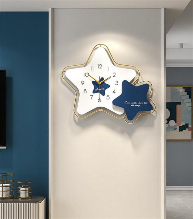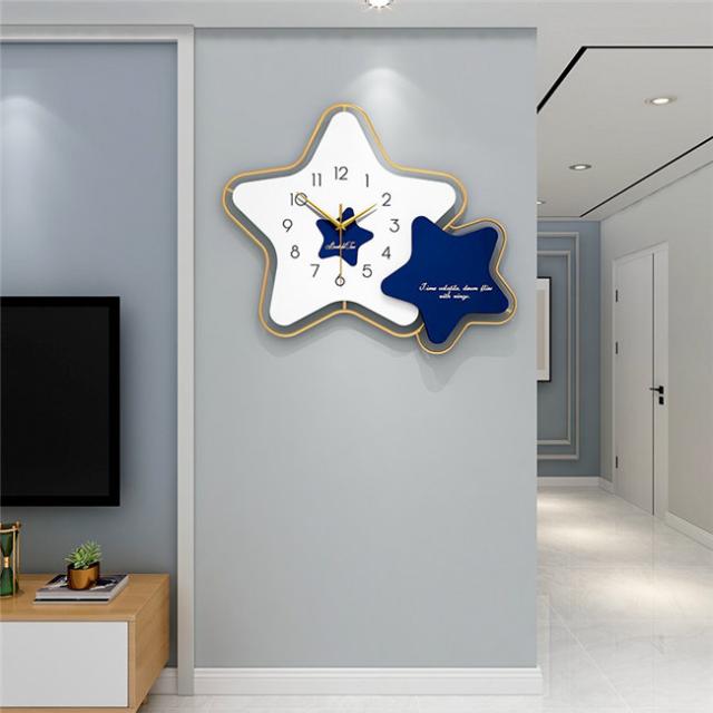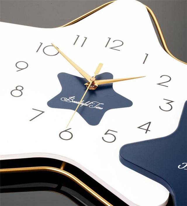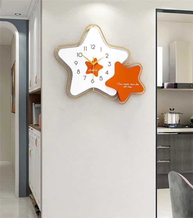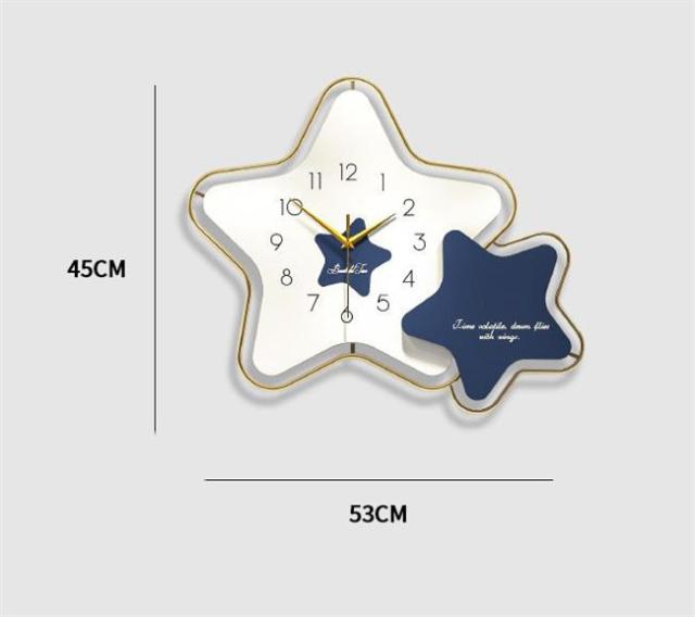 壁掛け時計 オレンジ/ブルー 星 45*53CM ナチュラル ギフト プレゼント キッズルーム 子供部屋 寝室 リビング 店舗 おしゃれ 北欧 ウッド DIY 豊富なデザイン 高級感溢れるポリゴンライン 新生活 贈り物 新築 開店祝い 記念 壁掛け飾り