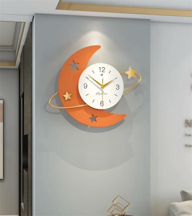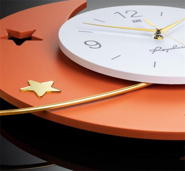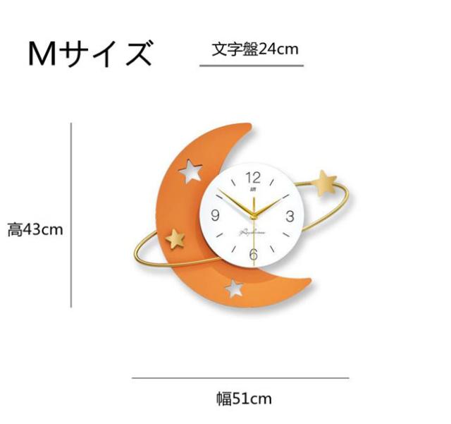 壁掛け時計 月 円型 オレンジ ナチュラル ギフト プレゼント キッズルーム 子供部屋 寝室 リビング 店舗 おしゃれ 北欧 ウッド DIY 豊富なデザイン 高級感溢れるポリゴンライン 新生活 贈り物 新築 開店祝い 記念 壁掛け飾り