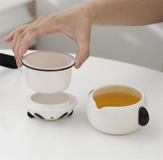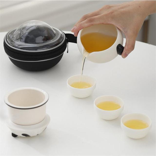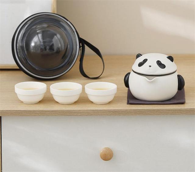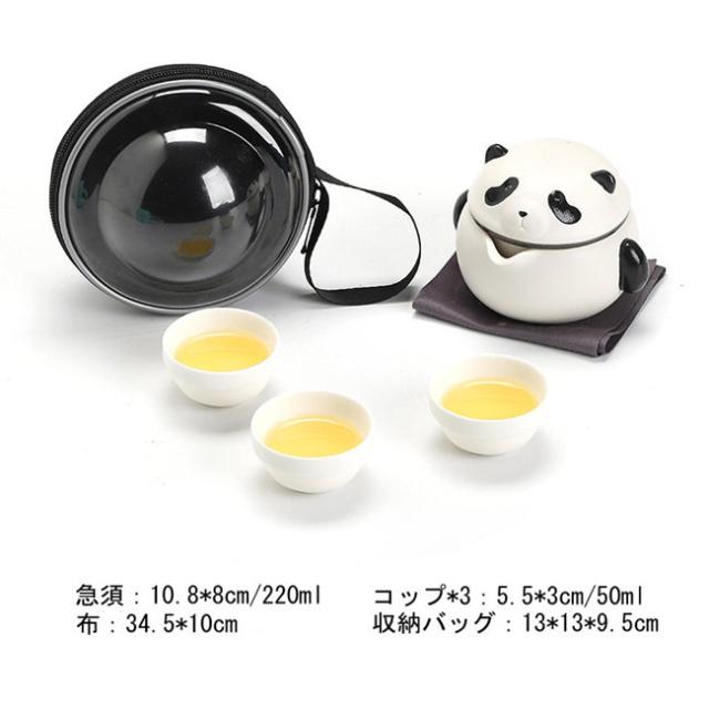 パンダ 携帯用茶器セット 茶芸 陶器 旅行 収納バッグ付き カンフー茶 6点セット コンパクト ティーポット 携帯式 軽量 通勤 お出かけ用茶器セット 贈り物 来客 事務室用旅行アウトドア先 便利 シンプル 湯呑みセット カンフー茶 茶具セット 茶道 プレゼント ギフト