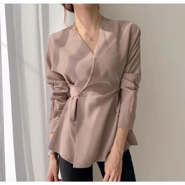 トップス ブラウス シャツ レディース フォーマル ビジネス 通勤 オフィス Vネック リボンベルト 結婚式 入園入学 卒園卒業 送料無料