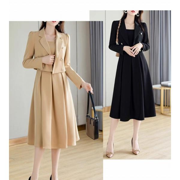 【ショート丈ブレザー×ワンピース☆レディース セットアップ】スーツ レディース セットアップ フォーマル 入園式 入学式 卒園式 卒業式 謝恩会 ワンピース スカート ジャケット ブレザー 2点セット ブラック ベージュ 20代 30代 40代 Aライン ひざ下丈 長袖 二次会 発表会 結婚式 普段着 ビジネス オフィス 送料無料