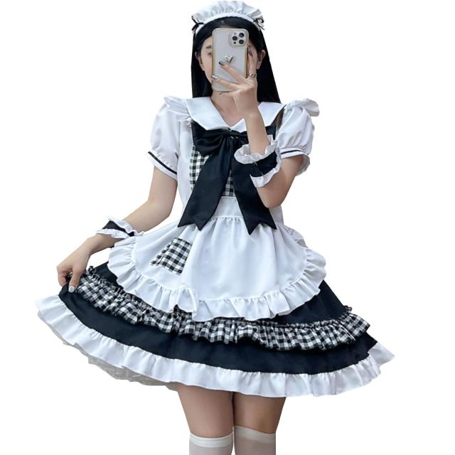 [FULINE] メイド服 コスプレ メイド かわいい メイド服 チェック コスチューム 仮装 メイド服 半袖 メンズ メイド服 女装 メイド服 大き