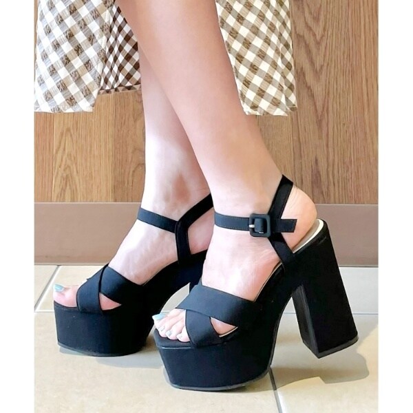 S(22.0cm−22.5cm):ヒール高:12cm 幅:7.3cm プラットフォーム:5cm 重量:片足約320g