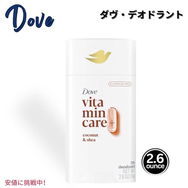 Dove ダヴ ビタミンケア+アルミニウムフリーVitaminCare+ Aluminum Free デオドラントスティック Deodorant Stick Coconut & Shea 2.6 oz