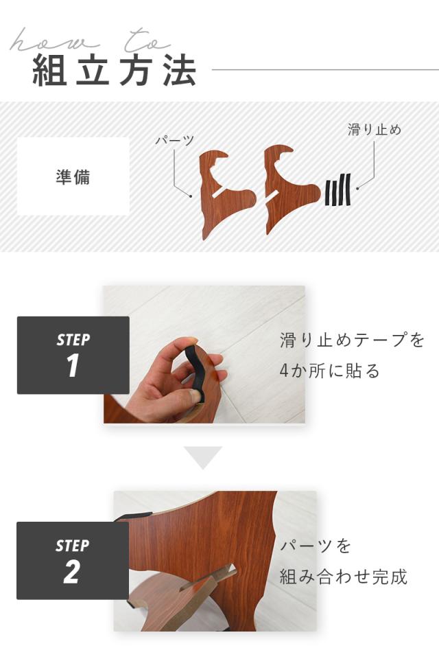 自立式のスタンド、壁に立て掛けないので傷や汚れが付かない。