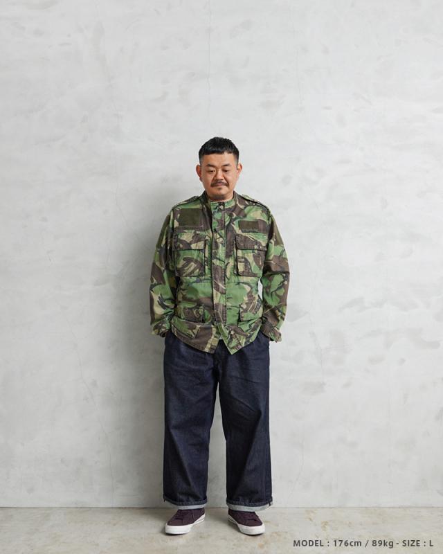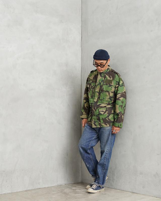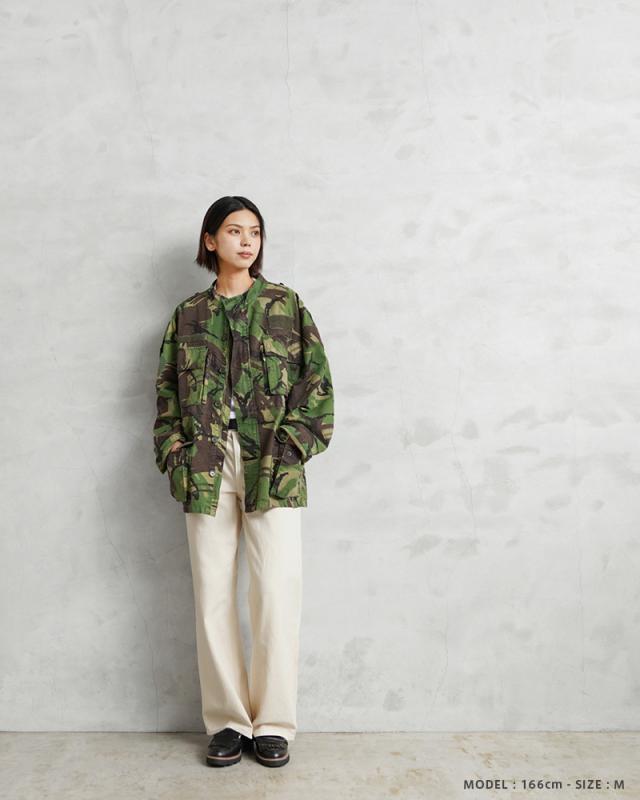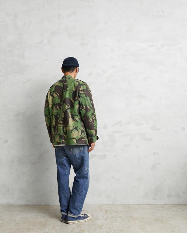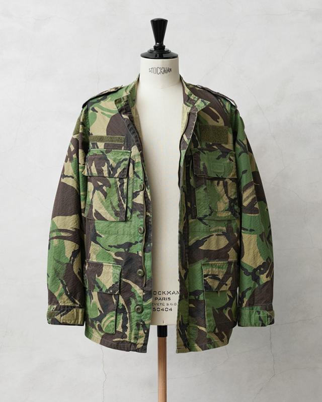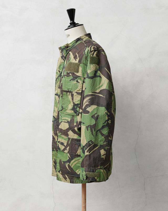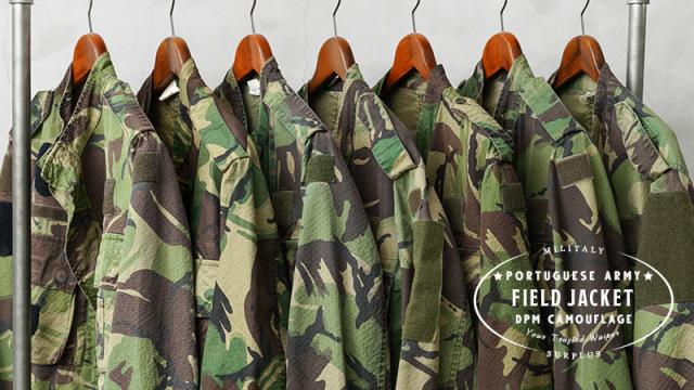 80〜90年代にポルトガル軍で採用されたDPMカモフラージュ(Disruptive Pattern Material)は、世界中の多くの軍隊でも採用されているウッドランドパターンを使用したカモフラージュ柄のデザインです。スタンドカラータイプのデザインが新鮮で、表面に波状の凹凸があるシアサッカーのような素材感のリップストップ生地が使用されています。