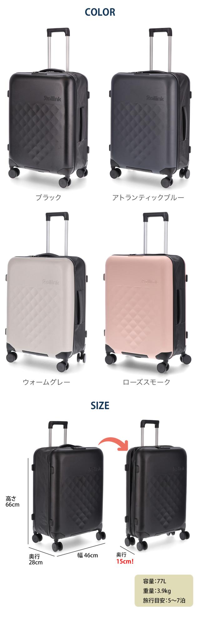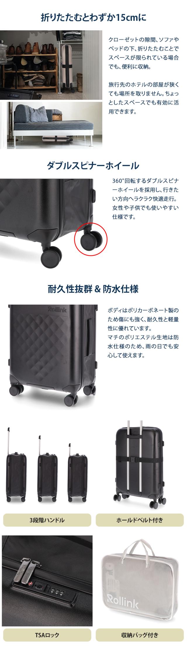 Rollink ローリンク 折りたためるスーツケース 77L キャリーバッグ 長期 大容量 折りたたみ 軽量 おしゃれ TSA 4輪 長期滞在 1週間 旅行 出張 国内 海外 かわいい