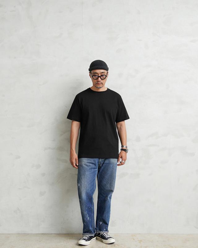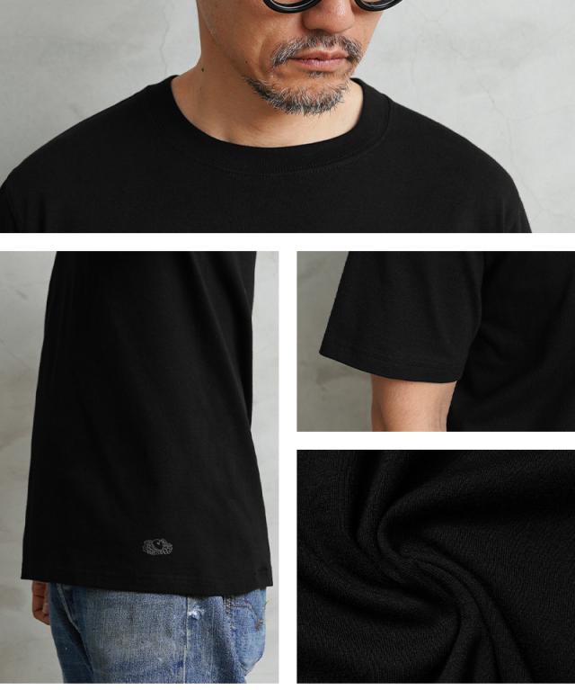 7オンスの程よい厚みながらも、ソフトな肌触りの100%コットン素材を使用。胴体部分はサイドの縫い目がない丸胴仕上げなので縫い代が肌に当たらずストレスフリーで上質な着心地、伸びやすい首周りにはダブルステッチを施したしっかりとした作りになっています。