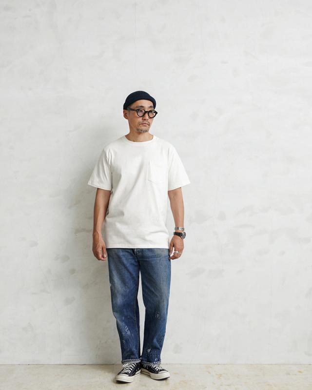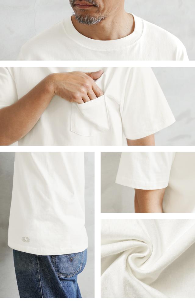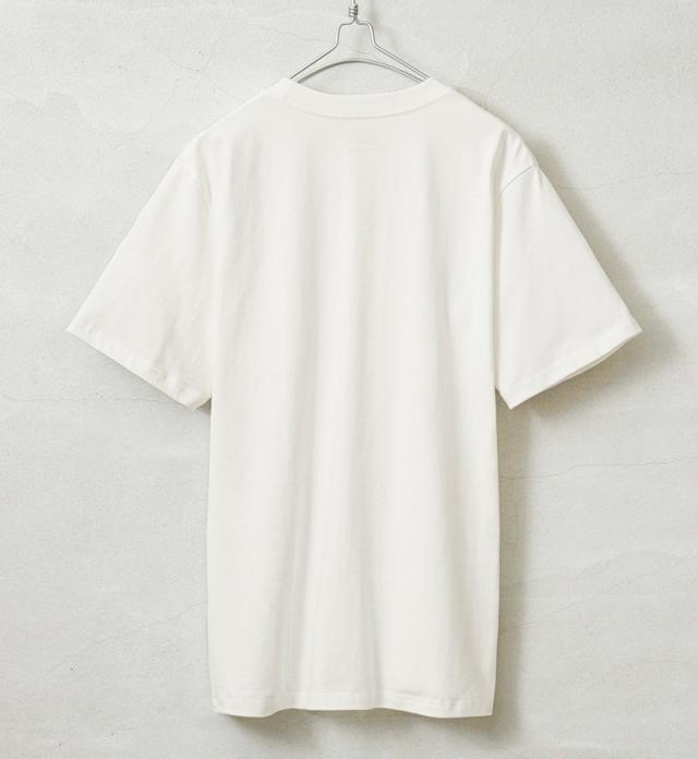 7オンスの程よい厚みながらも、ソフトな肌触りの100%コットン素材を使用。胴体部分はサイドの縫い目がない丸胴仕上げなので縫い代が肌に当たらずストレスフリーで上質な着心地、伸びやすい首周りにはダブルステッチを施したしっかりとした作りになっています。