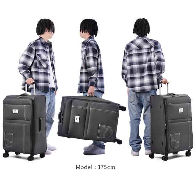 | 大人気アメリカの3大デニムブランドの『Lee』から、デニム調のカジュアルなデザインが魅力のスーツケースが登場!拡張用ファスナーを開けると最大4cmほどマチ幅が大きくなり約12L容量がUPするので、お土産など荷物が増えたときに便利です。ファスナー式の開閉部は安心のTSAロック機能搭載!8泊以上の荷物が入る大容量サイズ。 収納部には、メッシュポケット付き。 内装は、おしゃれなLeeのバンダナ柄。 優れた安定性と走行性を兼ね備えたキャスター(合計4輪)。小回りが利くので、混雑した場所でもスムーズに走行◎ ワンプッシュで引き伸ばせる伸縮キャリーハンドルは三段階に高さ調節が可能。 また、持ち手は湾曲しているので持ち上げやすく、手になじむ握りやすい素材を使用しました。 ブランドロゴとデニム柄にステッチが入ったデザインがポイント。 シンプルでおしゃれなデザインで年齢・性別問わずに幅広くお使いいただけます。 |