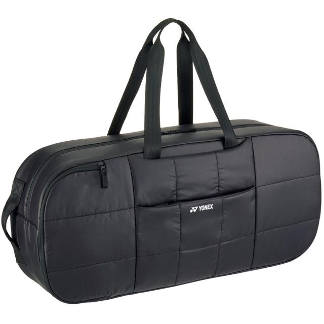 素材:ナイロン サイズ:73cm×18cm×33cm 仕様:可変部屋仕切り、YKKファスナー、撥水仕様、シューズポケット サブ機能:正面ポケット 、ラケット2本収納ポケット、持ち手収納スペース(正面側・背面側) |