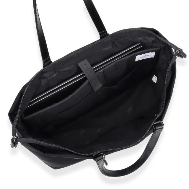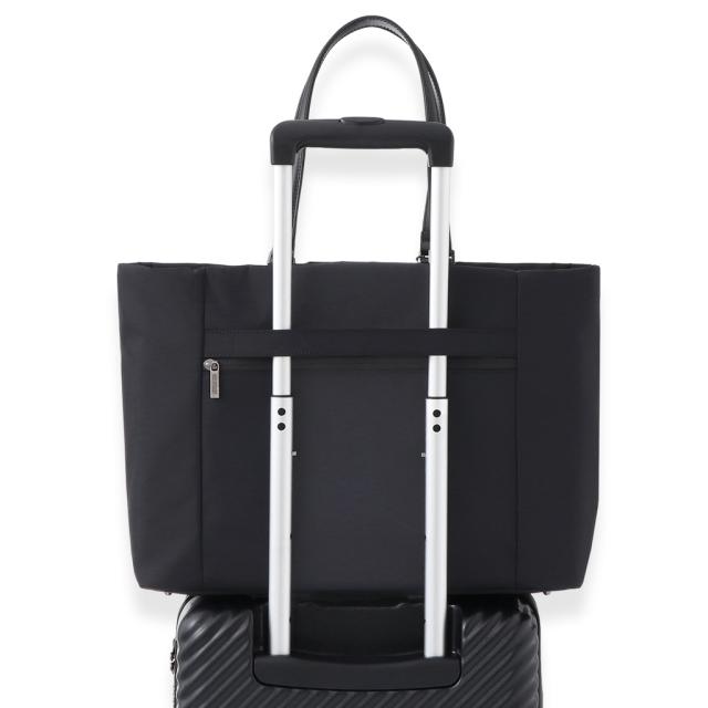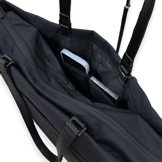 シンプルなデザインと、デジタルツールの持ち歩きにも対応したスマートな機能性が特徴のレディースバッグ。 POINT 01 メイン収納はB4サイズ対応。