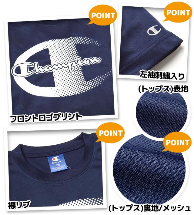 【送料無料】男児 キッズ 吸汗速乾 半袖 Tシャツスーツ 上下組 Champion/チャンピオン ハーフパンツ ジャージ ドライ 裏メッシュ 子供服 男の子 110cm 120cm 130cm td-0806e-nv【メール便対応】