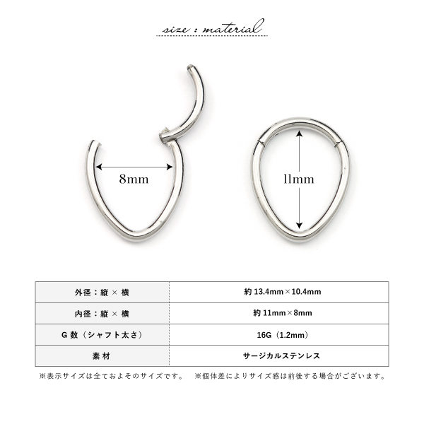 セグメント リング つけっぱなし ステンレス サージカルステンレス 医療用ステンレス 316L 金属アレルギー アレルギーフリー ボディピアス 16G しずく ドロップ 雫 ダイス ワンタッチ キャッチレス ロック 軟骨 ピアス 片耳用 メンズ レディース モチーフ 個性的