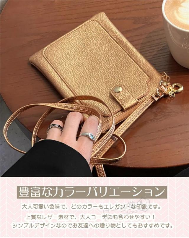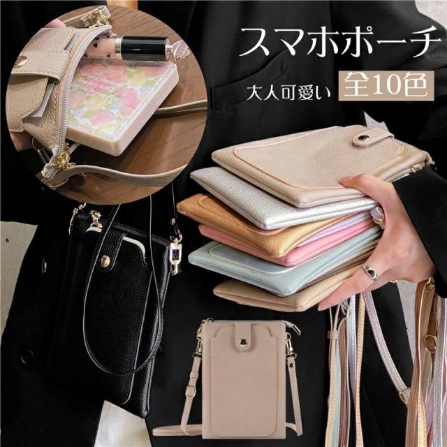 ファスナー付き スマホポーチ スマホショルダー ショルダーポーチ かわいい おしゃれ 斜め掛け 肩掛け ポーチ ミニショルダー バッグ 財布 鍵 革 軽量 薄型 コンパクト 携帯バッグ お財布ショルダー くすみカラー 全10色 ギフト 縦型 送料無料 取り出しやすい 散歩 買い物