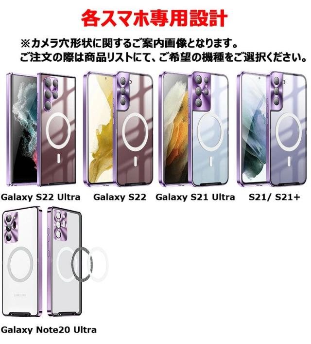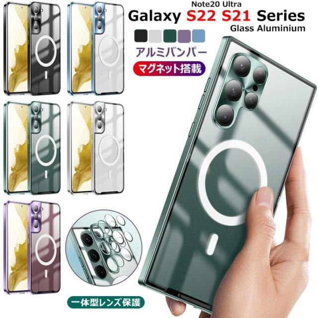一体型レンズ保護カバー Galaxy S22 アルミバンパーケース Galaxy S21 マグネット搭載 galaxy S22 ultra 金属ケース カメラフィルム Galaxy Note20 Ultra おしゃれ 背面 s21+ S21 Ultra 5g ケース 艶消し マットパネル 半透明 カバー スマホケース アルミ 合金製 ロック付き